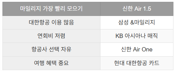 항공 마일리지 신용카드 선택 기준